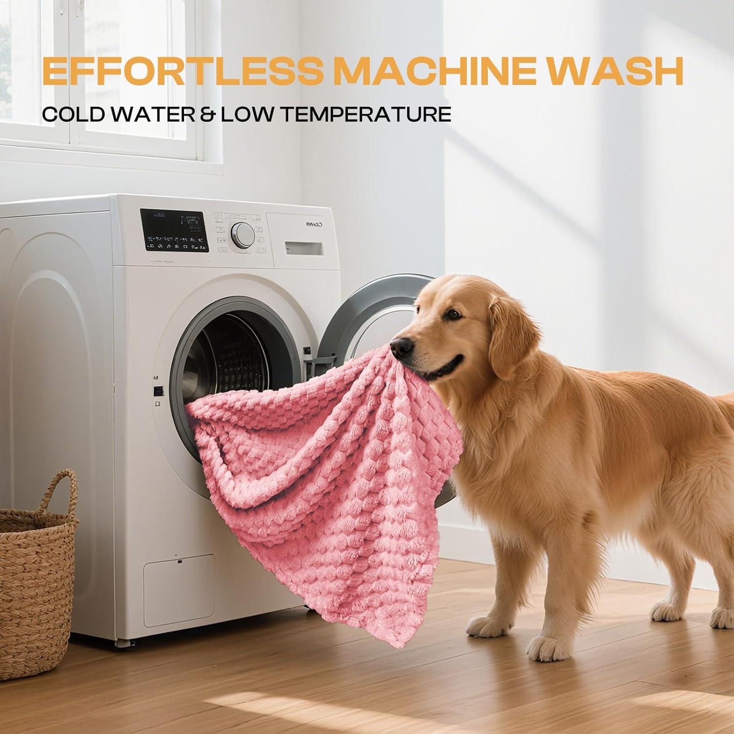【Long-Lasting & Effortless Care】The tight stitching can withstand pet scratching and frequent use. This dog throw blanket is completely machine washable in cold water, can be dried on a low-temperature, and retain its plush softness wash after wash. Advanced color-lock technology prevents fading, ensuring vibrant jacquard patterns stay beautiful. Enjoy cozy moments longer with your pet, minimizing replacements.