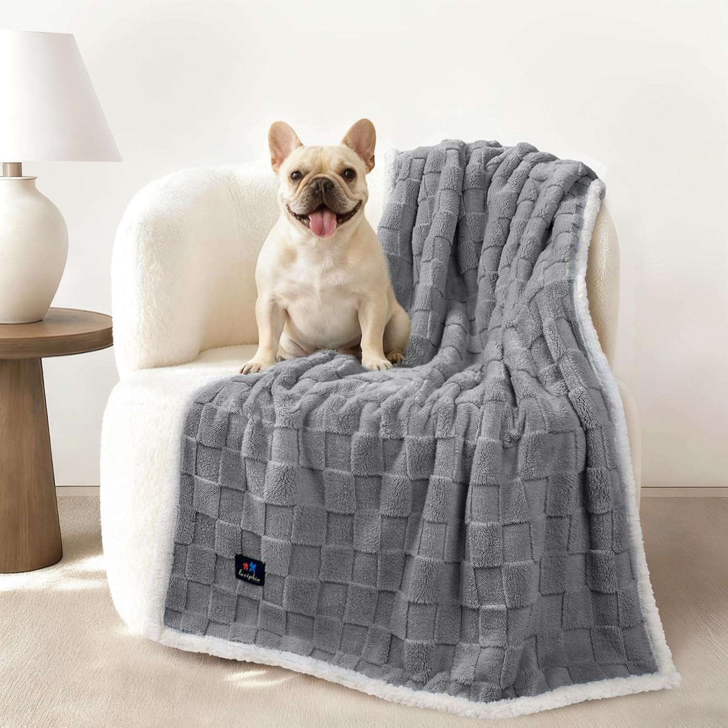 imageLuciphia Waterproof Dog Blanket for Small Dogs Washable Soft Sherpa Fleece Cat Blankets with 3D Jacquard Cozy Calming Reversible Couch Protector Furniture Protection for Pet Blue White 40x28 inchCookie Gray
